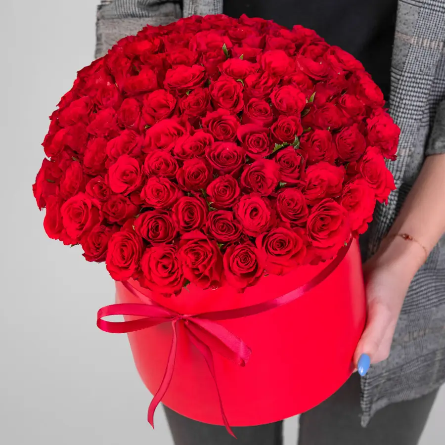 101 Кенийская красная роза в коробке — купить по цене от 13229 руб. с доставкой в Дзержинске