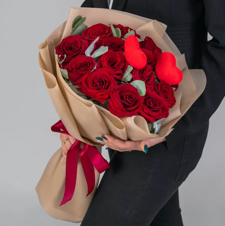 15 Бордовых Роз и Эвкалипт — купить по цене от 3235 руб. с доставкой в Дзержинске