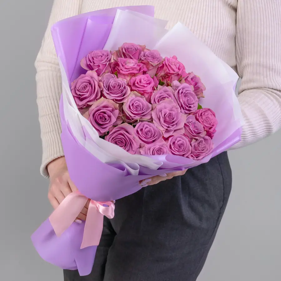 На фото - 19 Сиреневых Роз. В составе данной композиции: Роза Кенийская - 19 шт,