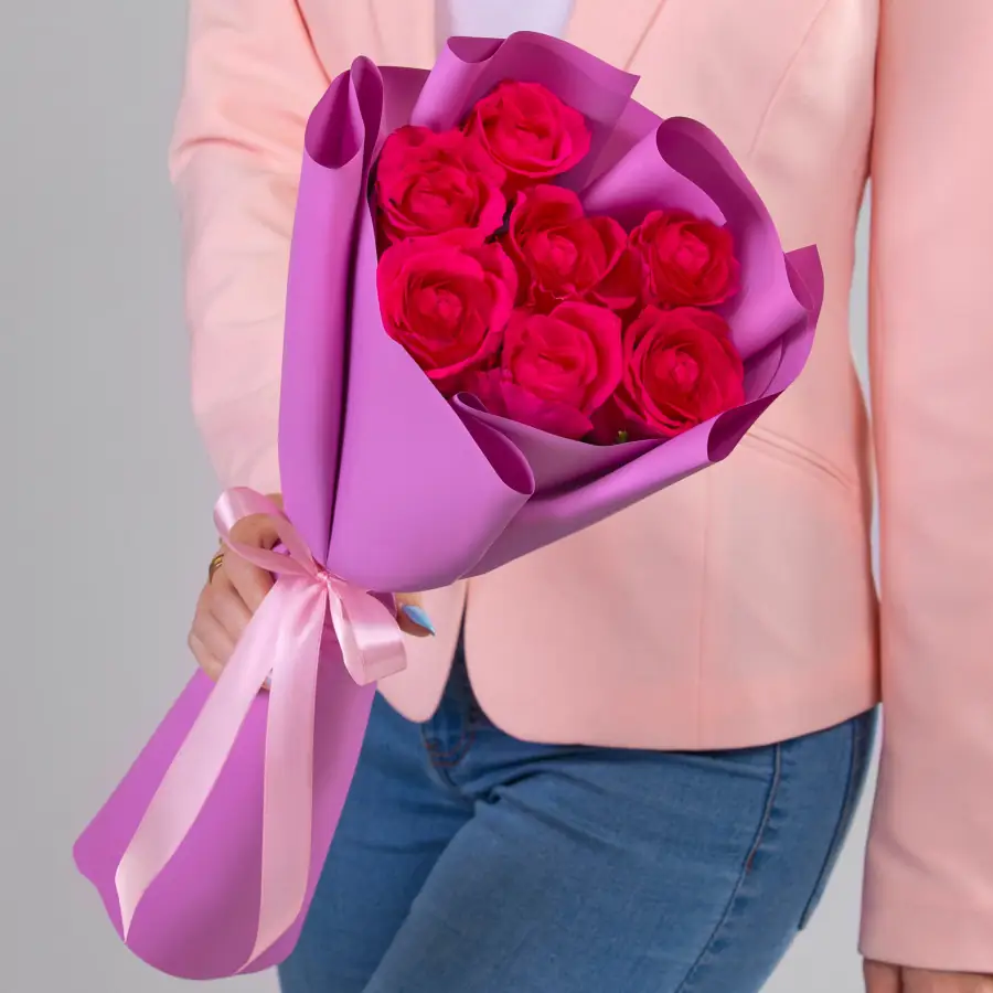 7 Малиновых Роз в упаковке — купить по цене от 2920 руб. с доставкой в Дзержинске