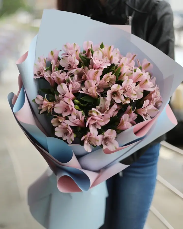 На фото - 21 Светлая Альстромерия в упаковке . В составе данной композиции: Альстромерия - 21 шт,