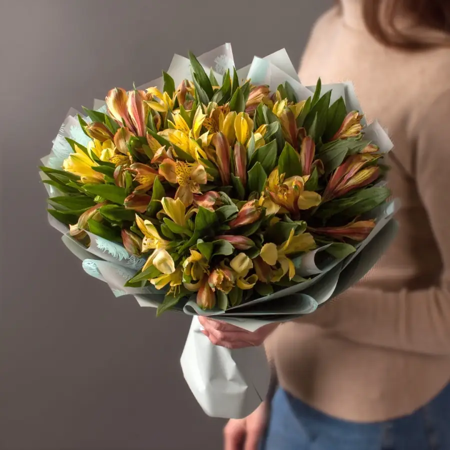 На фото - 21 Желтая Альстромерия в упаковке . В составе данной композиции: Альстромерия - 21 шт,