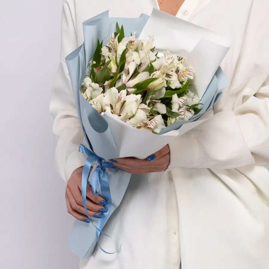 У нас можно заказать 9 Светлых Альстромерий в упаковке за 2990 руб.