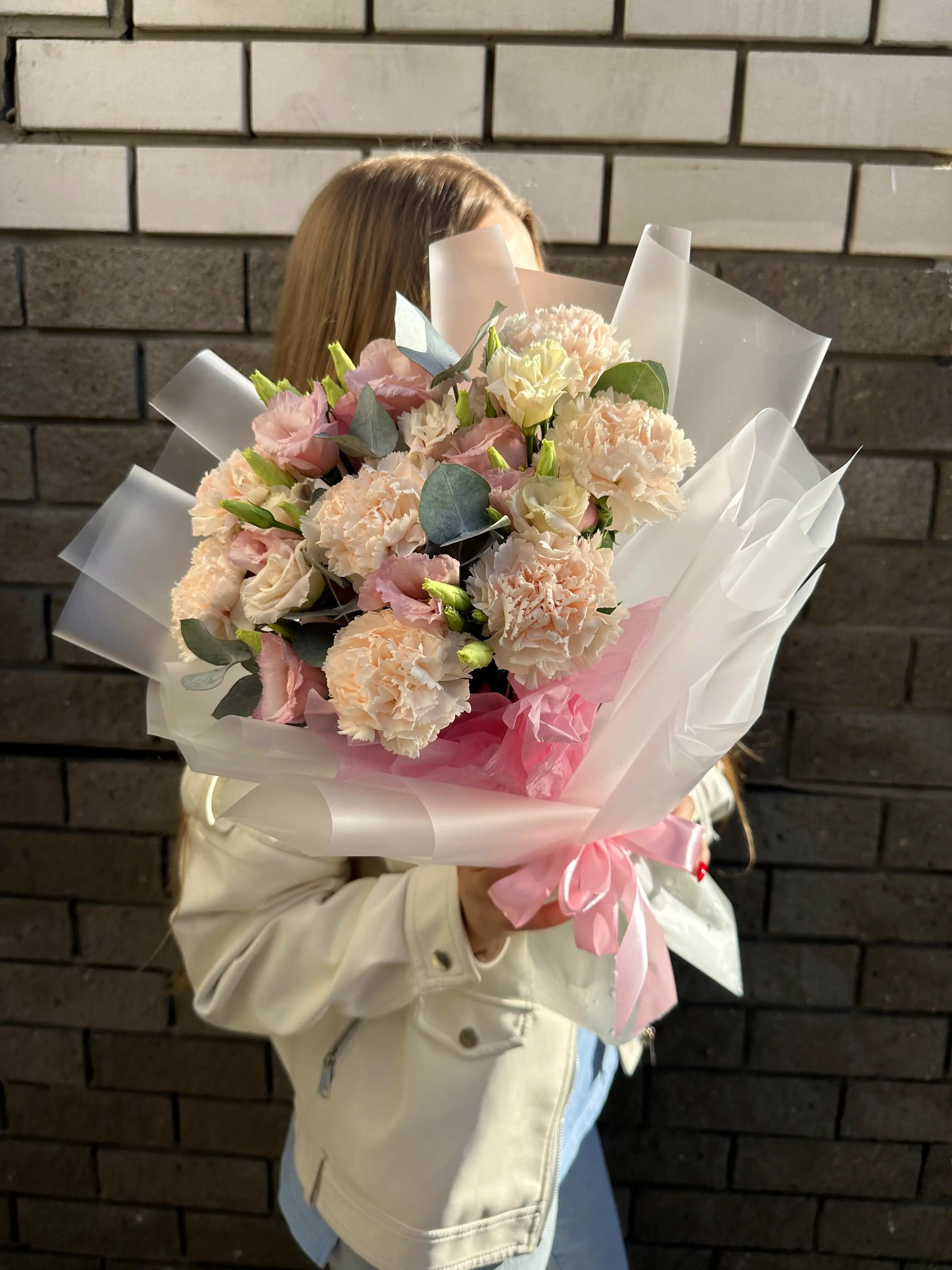 Букет с гвоздикой и эустомой — купить по цене от 3680 руб. с доставкой в Дзержинске