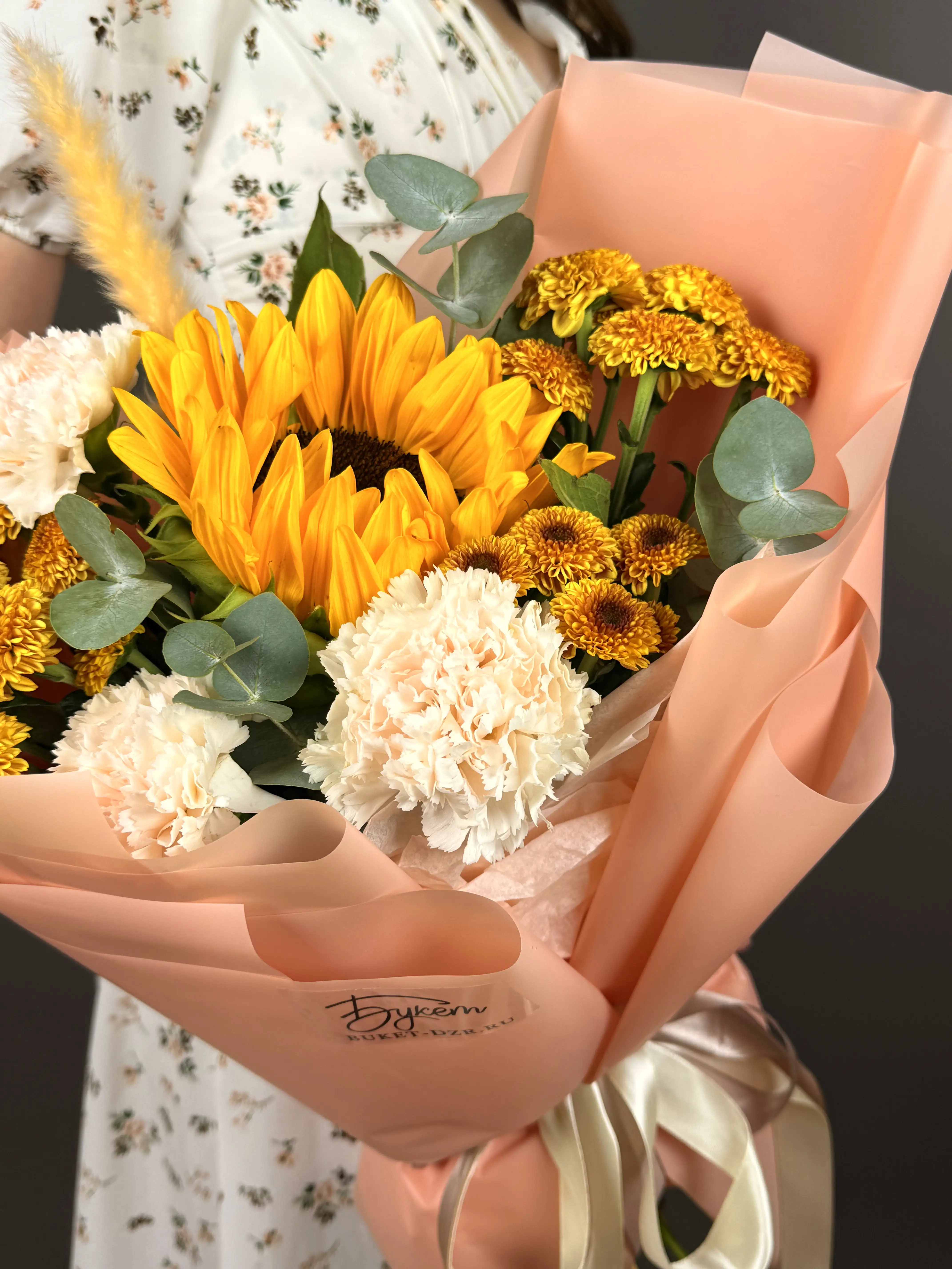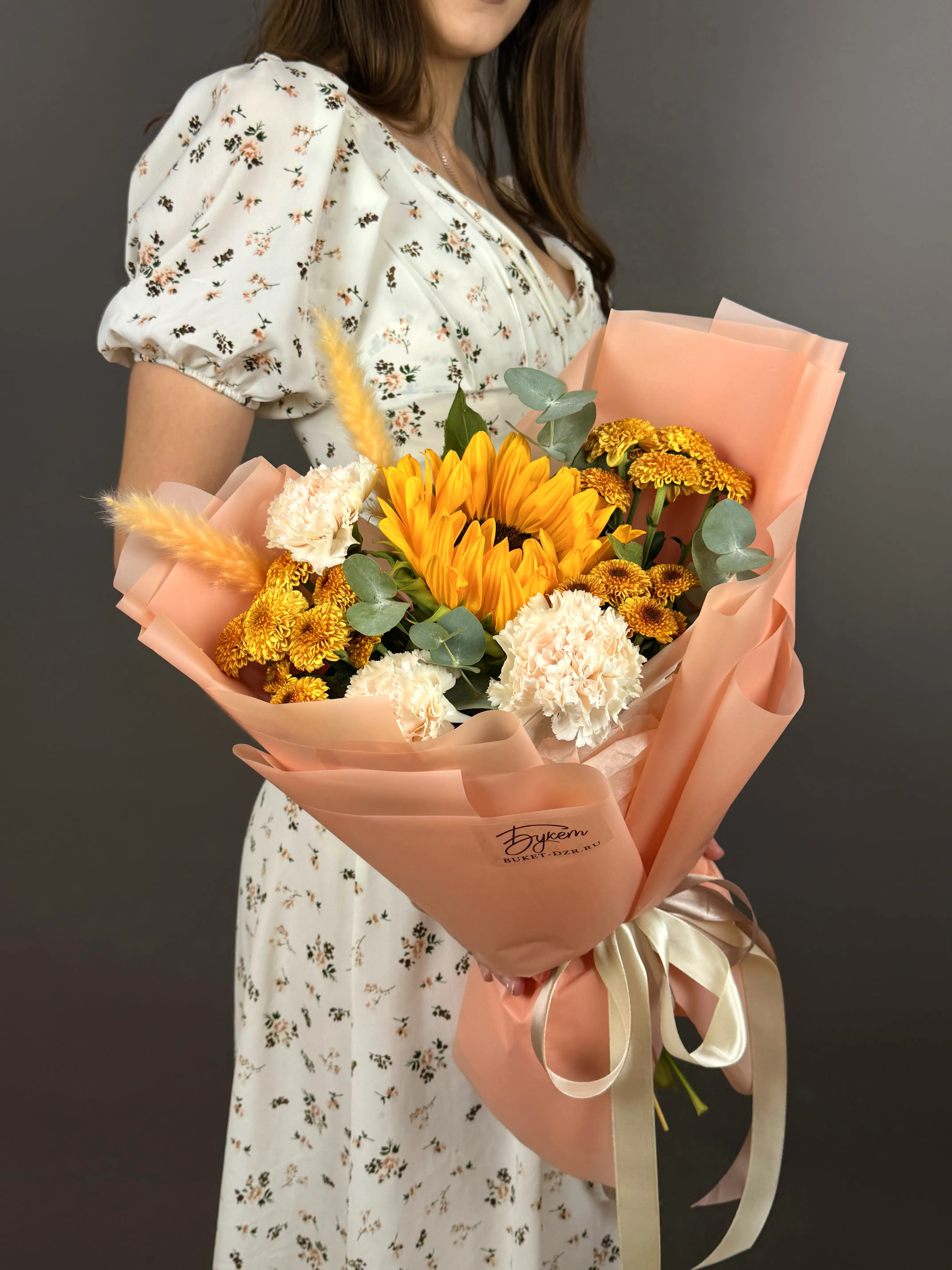 Солнечный букет с подсолнухом и диантусами — купить по цене от 3400 руб. с доставкой в Дзержинске