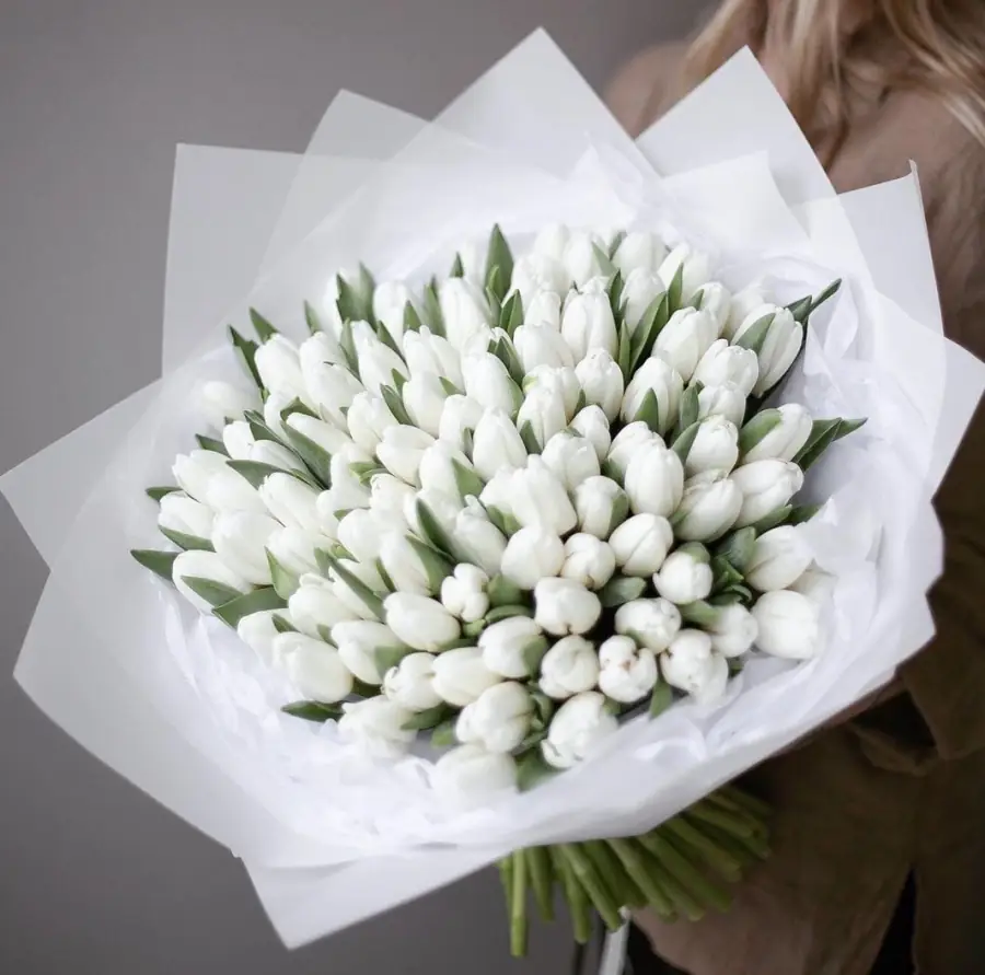 101 Белый Тюльпан в пленке — купить по цене от 22460 руб. с доставкой в Дзержинске