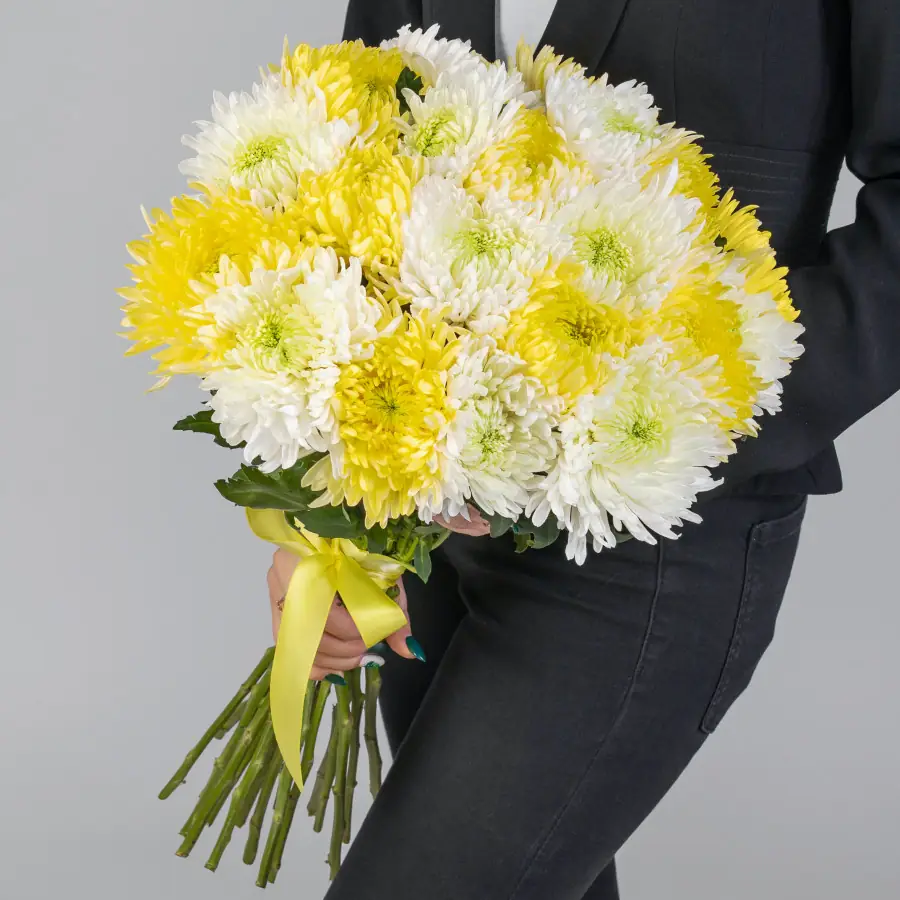 19 Бело-Желтых Игольчатых Хризантем — купить по цене от 7640 руб. с доставкой в Дзержинске