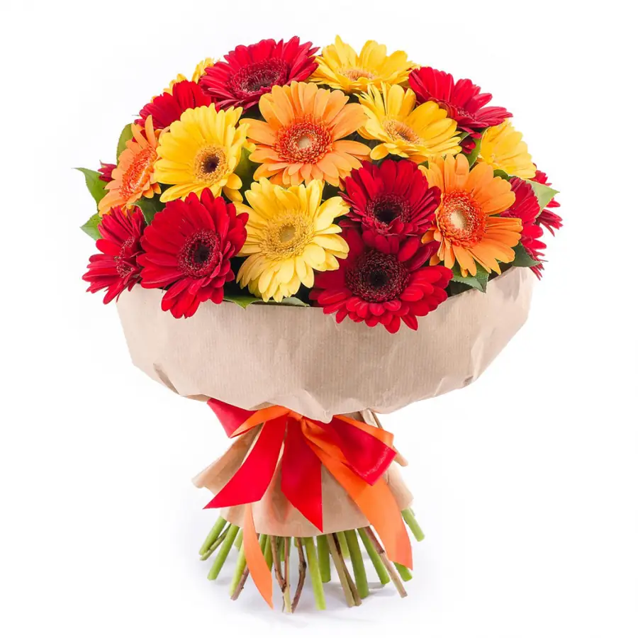 25 Гербер Микс в упаковке - пример оформления на фото. Состоит из: Гербера микс - 25 шт.,