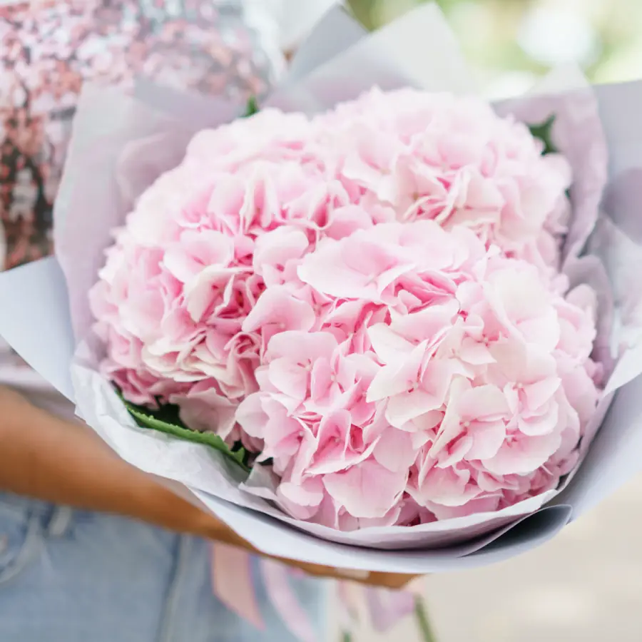 3 Розовые Гортензии - пример оформления на фото. Состоит из: Гортензия Нежно-Розовая - 3 шт.,