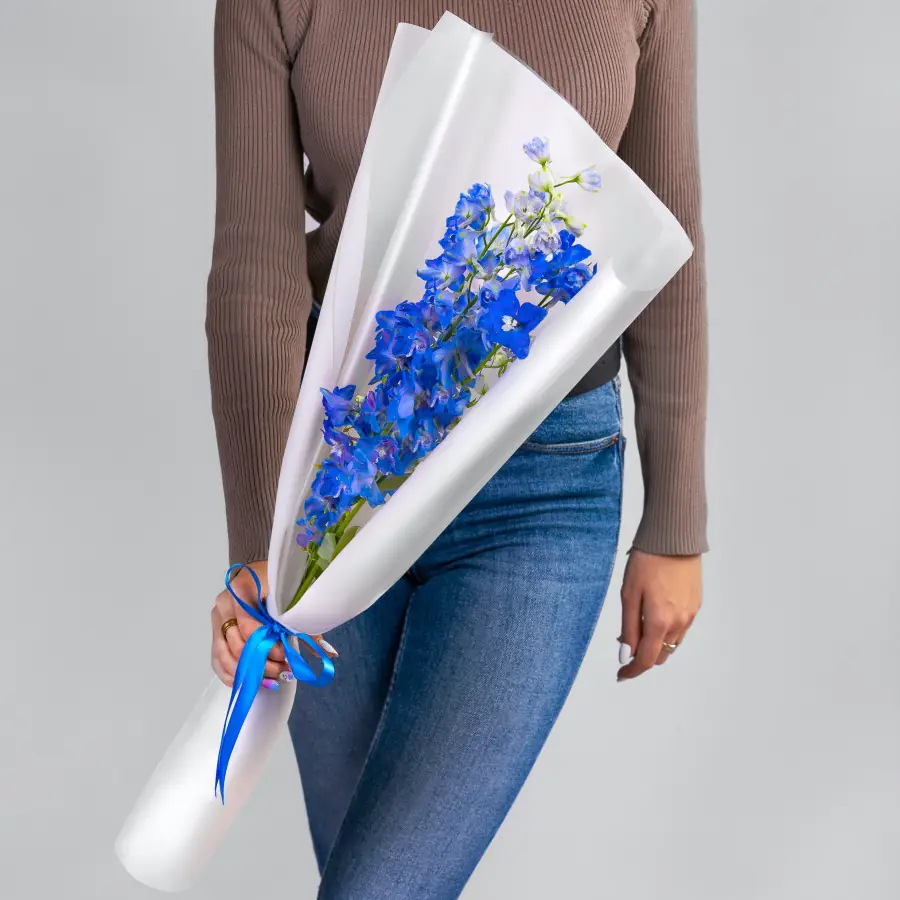 3 Синих Дельфиниума - пример оформления на фото. Состоит из: Дельфиниум - 3 шт,