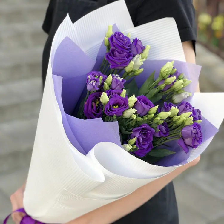Букет из 5 Фиолетовых Лизиантусов - пример оформления на фото. Состоит из: Лизиантус Фиолетовый - 5 шт.,