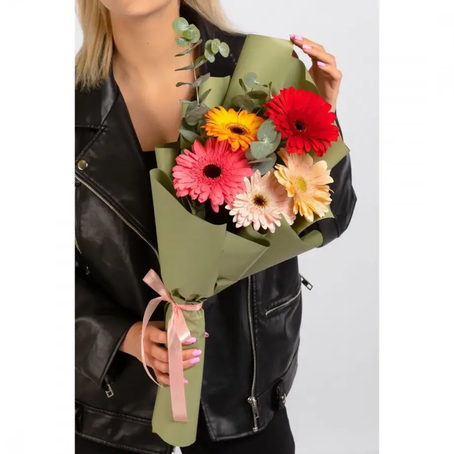 5 Гербер Микс - пример оформления на фото. Состоит из: Гербера микс - 5 шт. ,