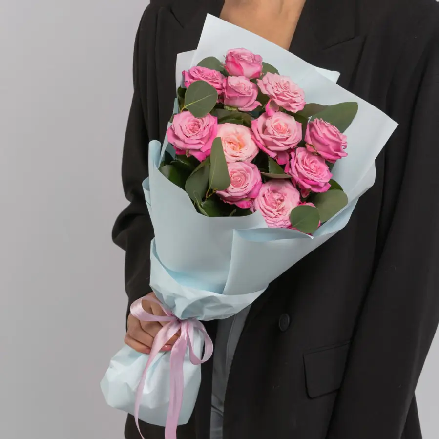 5 Кустовых Пионовидных Розовых Роз - пример оформления на фото. Состоит из: Роза кустовая пионовидная - 5 шт,