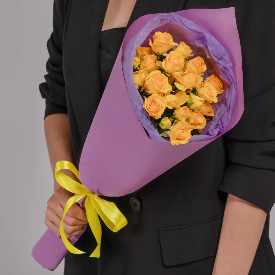 5 Желтых Роз в упаковке - пример оформления на фото. Состоит из: Роза Кустовая - 5 шт,