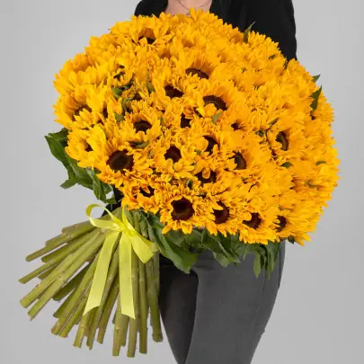 51 Подсолнух - пример оформления на фото. Состоит из: Подсолнух - 51 шт, Лента атласная, . Собираем только из свежих цветов, после сборки пришлем Вам фото. Доставим по г. Дзержинску и Нижегородской области, стоимость - 16710 руб..