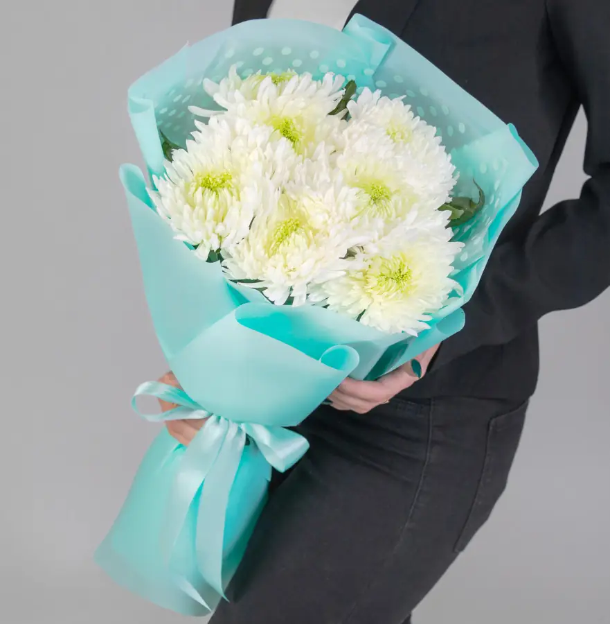 7 Игольчатых Хризантем - пример оформления на фото. Состоит из: Хризантема одноголовая - 7 шт,