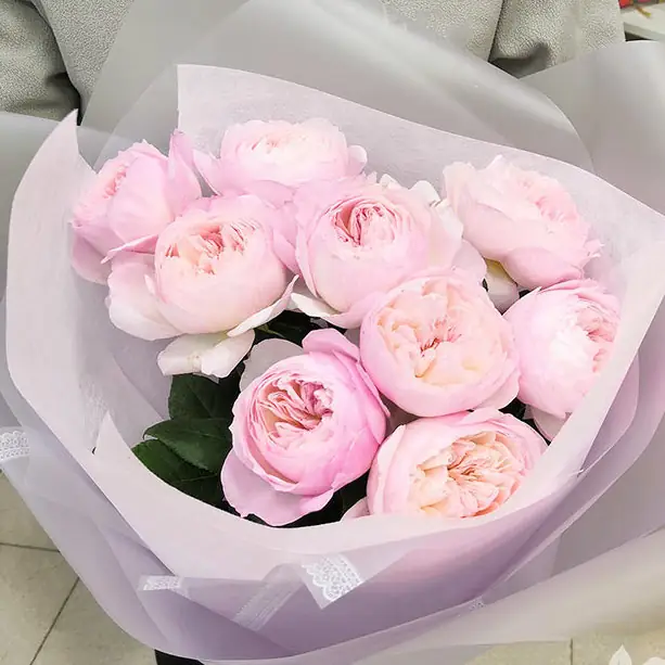9 Роз Пинк Охара - пример оформления на фото. Состоит из: Роза пионовидная - 9 шт,