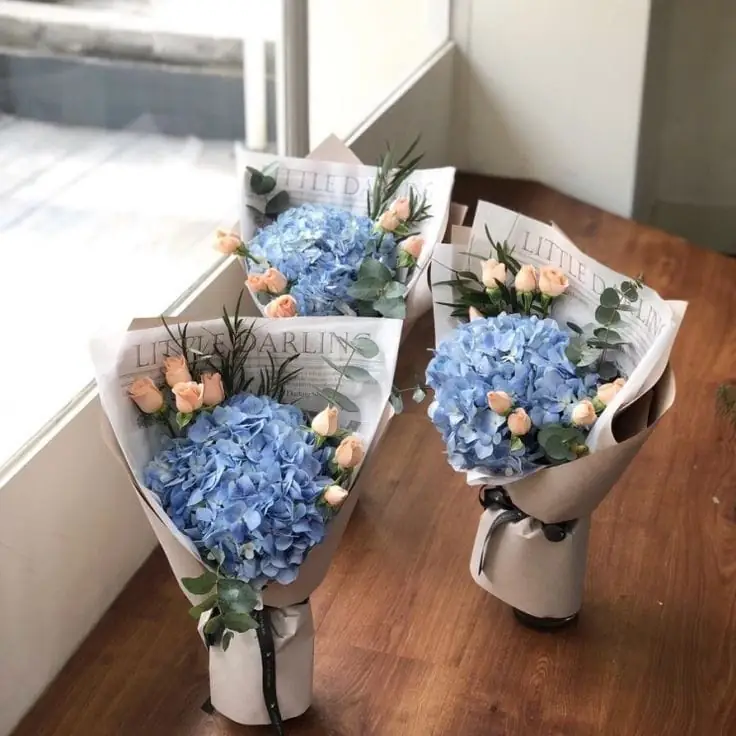 Букет "Голубая Лагуна" - пример оформления на фото. Состоит из: Гортензия Голубая - 1 шт.,