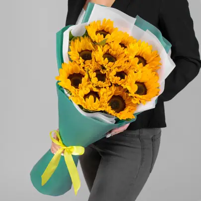 11 подсолнухов - пример оформления на фото. Состоит из: Подсолнух - 11 шт,