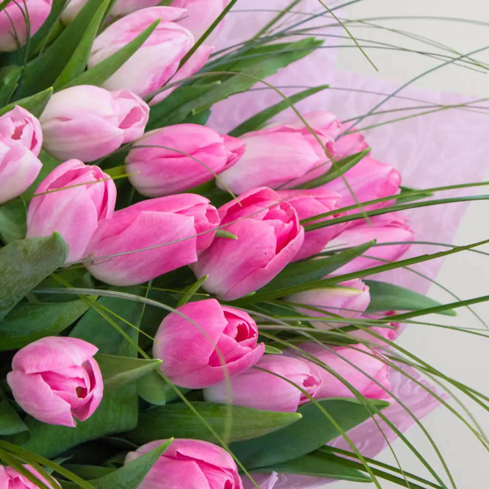Букет из 35 розовых тюльпанов - пример оформления на фото. Состоит из: Тюльпан - 35 шт.,