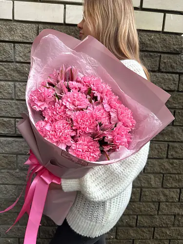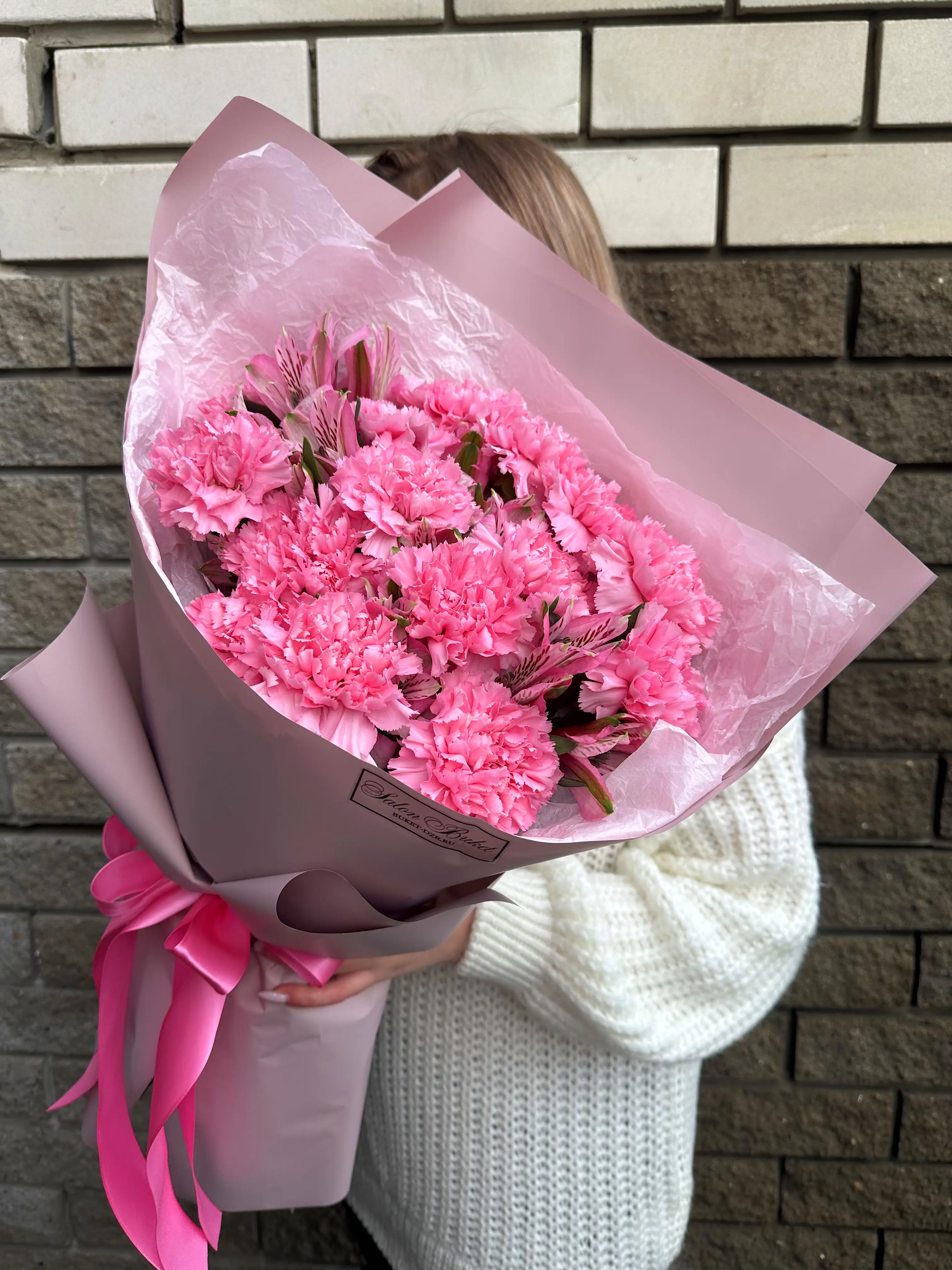 Композиция из альстромерии и гвоздик - пример оформления на фото. Состоит из: Диантус - 15 шт,
