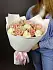 Букет из белых диантусов и розовых роз - пример оформления на фото. Состоит из: Роза Эквадор - 5 шт,