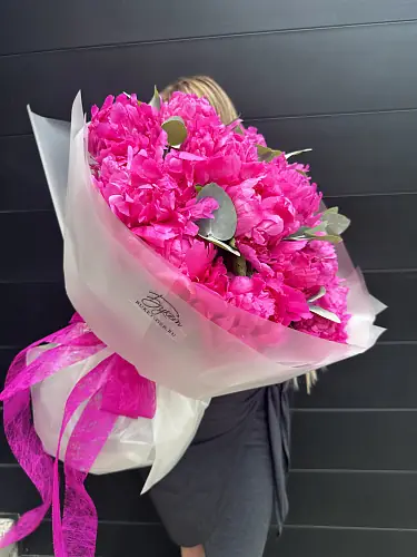 Букет из 15 малиновых пионов - пример оформления на фото. Состоит из: Пион - 15 шт,