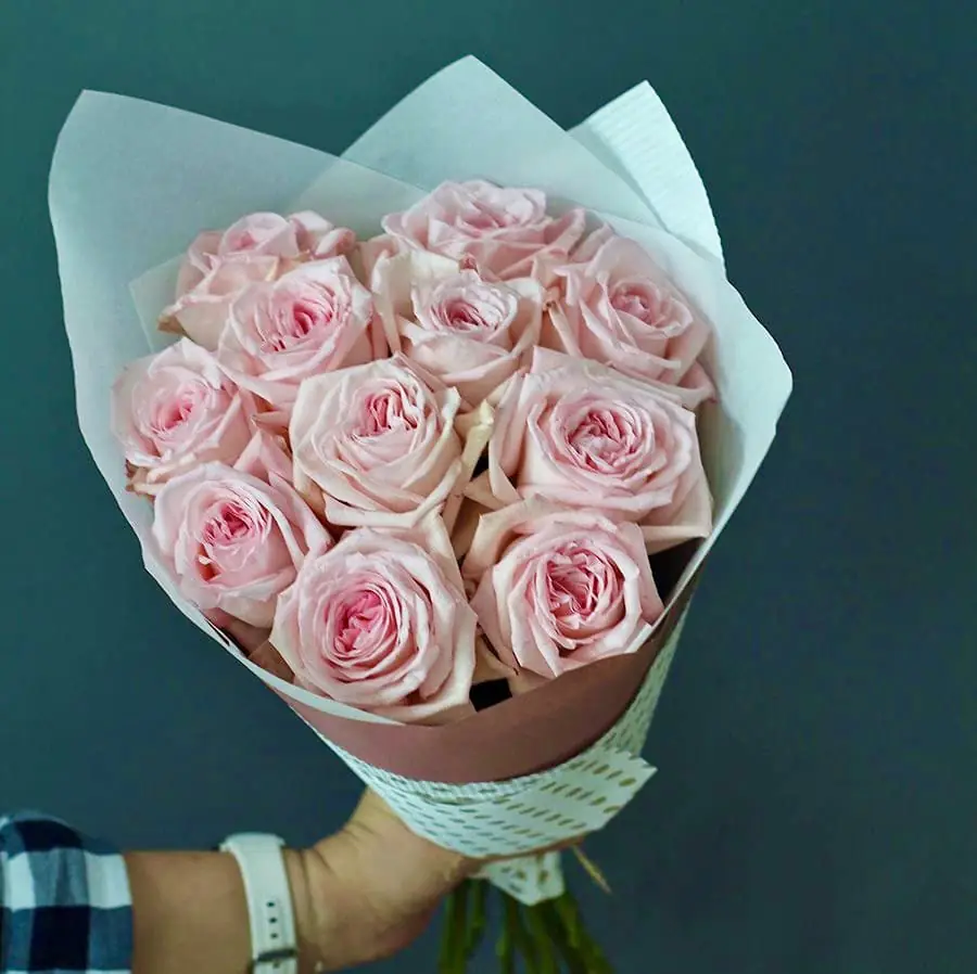 Нежный Букет из Пионовидной розы в упаковке - пример оформления на фото. Состоит из: Роза пионовидная - 15 шт,