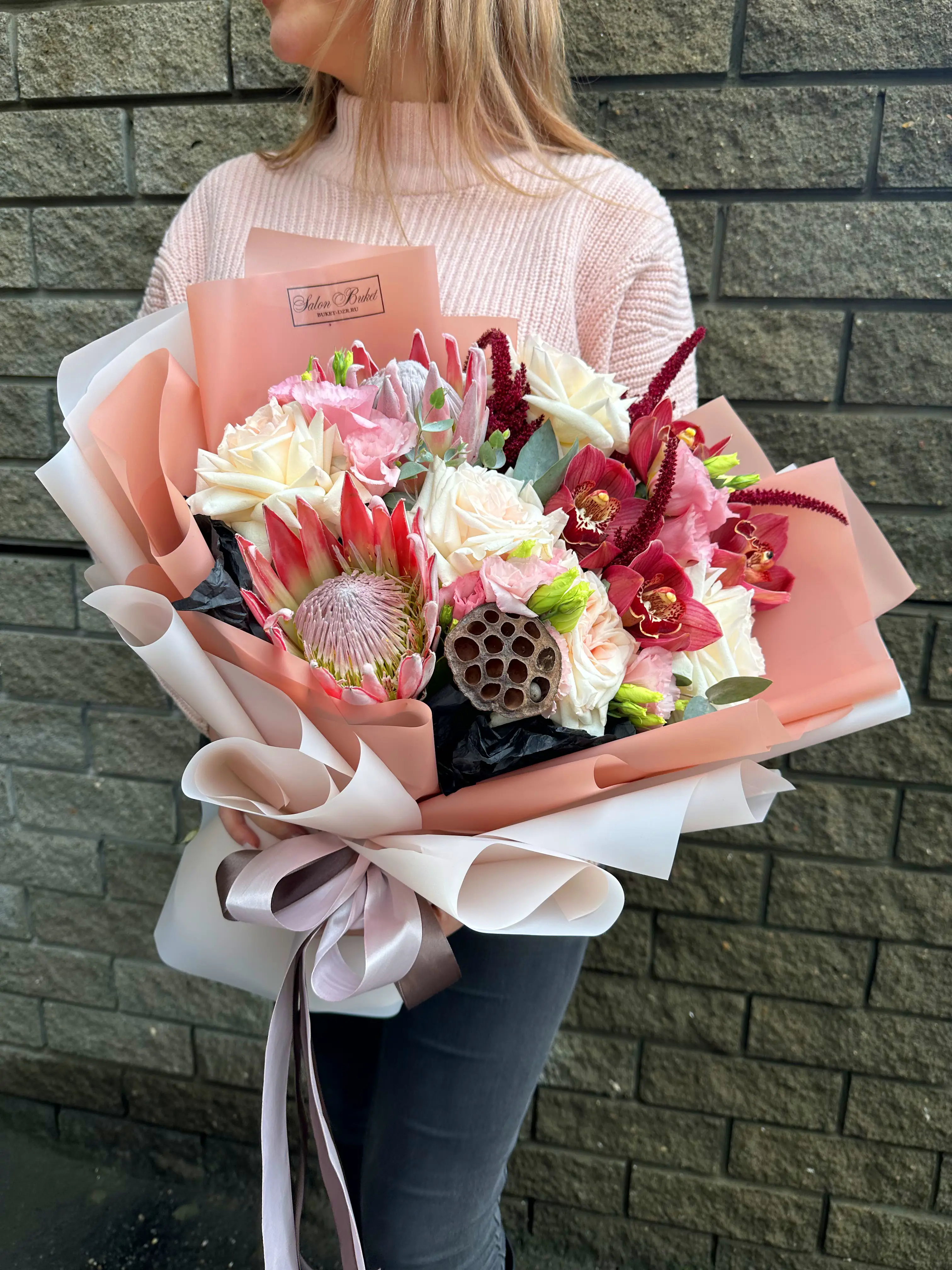 Букет из протей и роз - пример оформления на фото. Состоит из: Протея - 2 шт,
