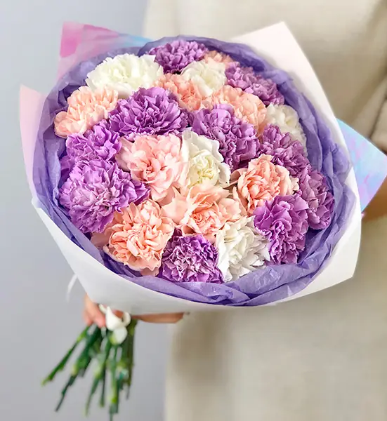 Моно-букет из великолепных диантусов трех расцветок, объединенных в одно пушистое облако.