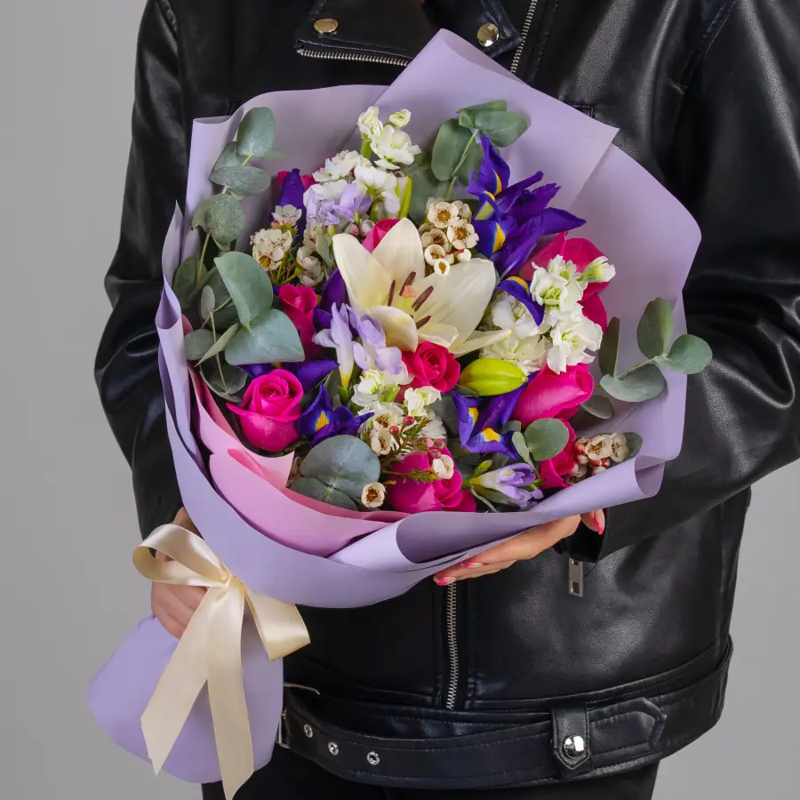 Букет составляется непосредственно в день доставки из свежих цветов, а затем с приятной улыбкой вручается адресату.
