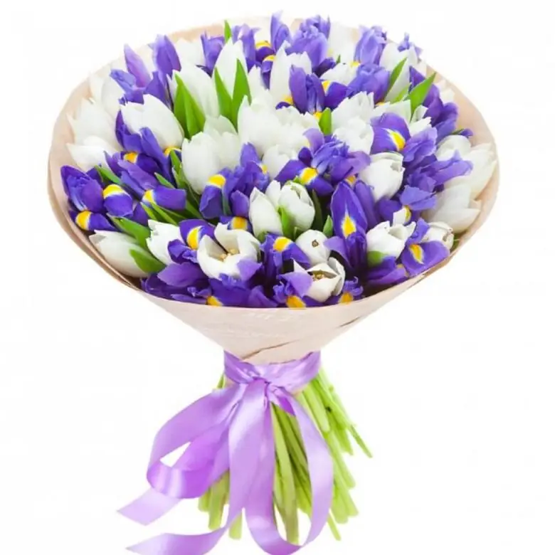 Букет "Праздник Весны" - пример оформления на фото. Состоит из: Тюльпан Белый - 25 шт.,