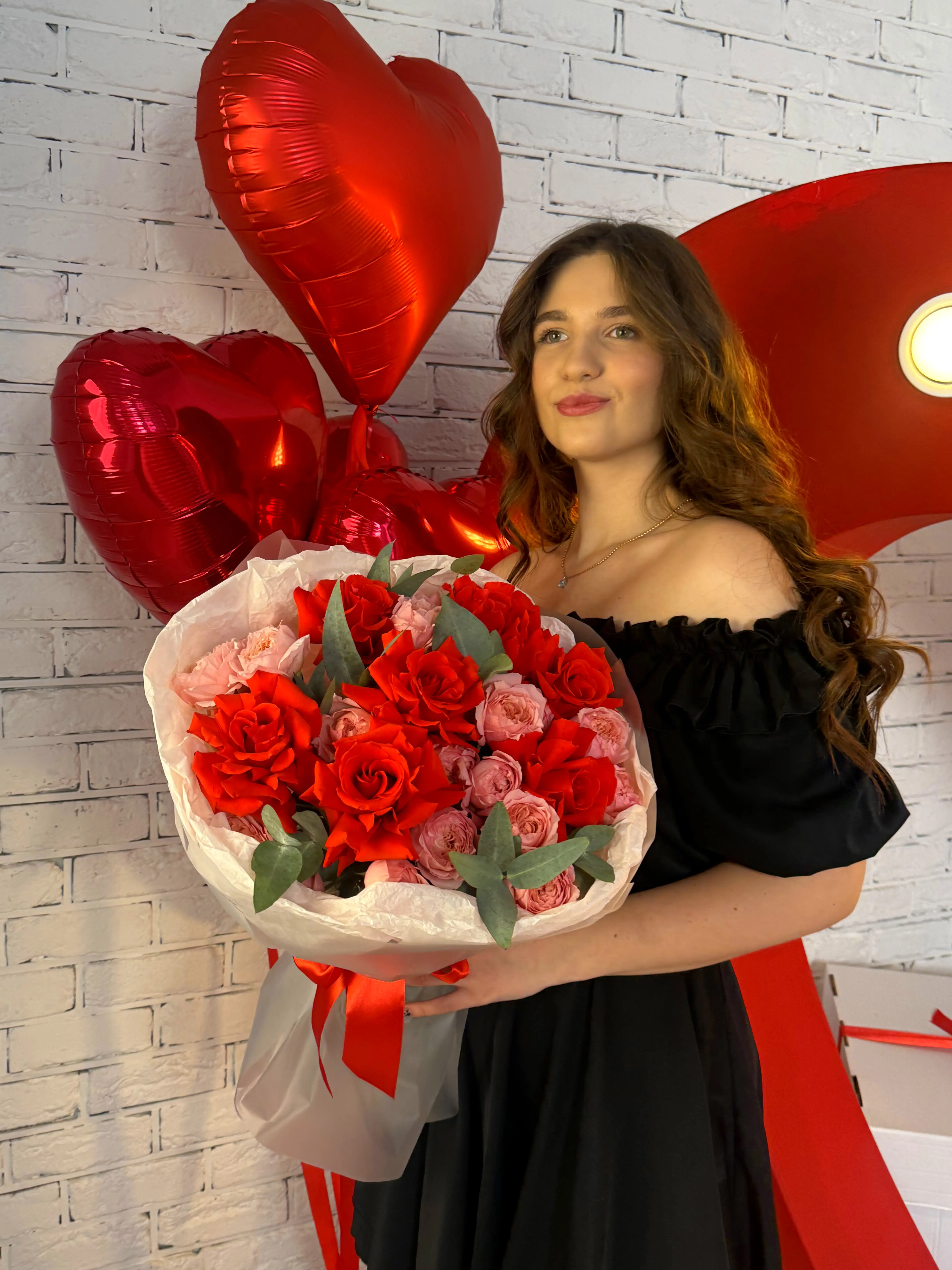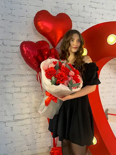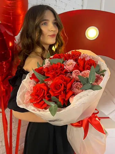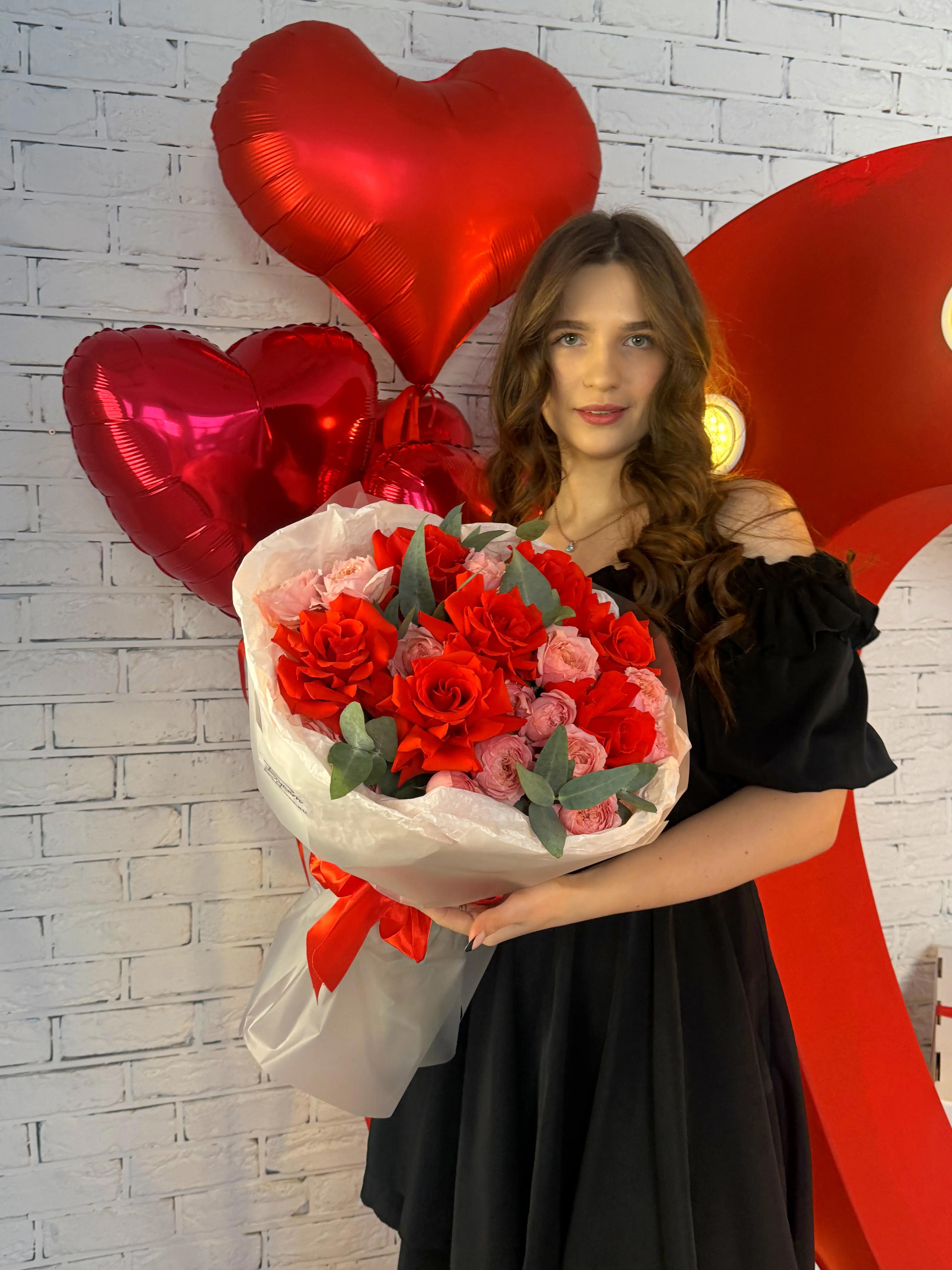 Лента атласная. Собираем только из свежих цветов, после сборки пришлем Вам фото. Доставим по г. Дзержинску и Нижегородской области, стоимость - 5710 руб..