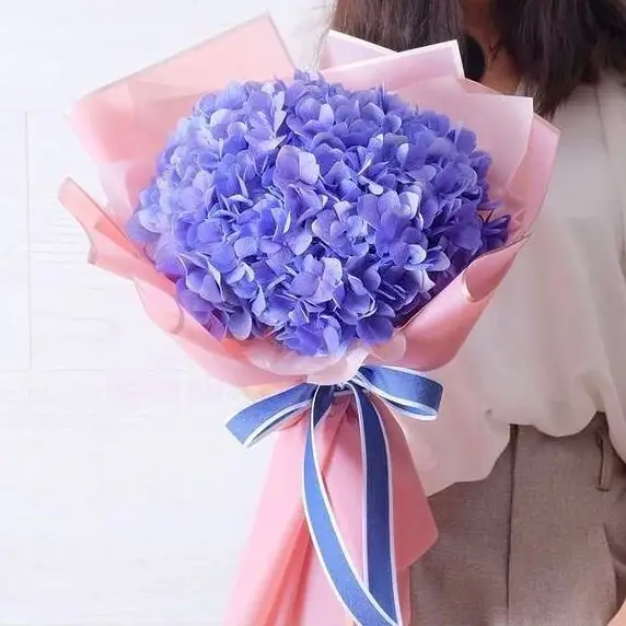 Синяя Гортензия - пример оформления на фото. Состоит из: Синяя гортензия - 1 шт., Упаковка, Лента. Собираем только из свежих цветов, после сборки пришлем Вам фото. Доставим по г. Дзержинску и Нижегородской области, стоимость - 1800 руб..