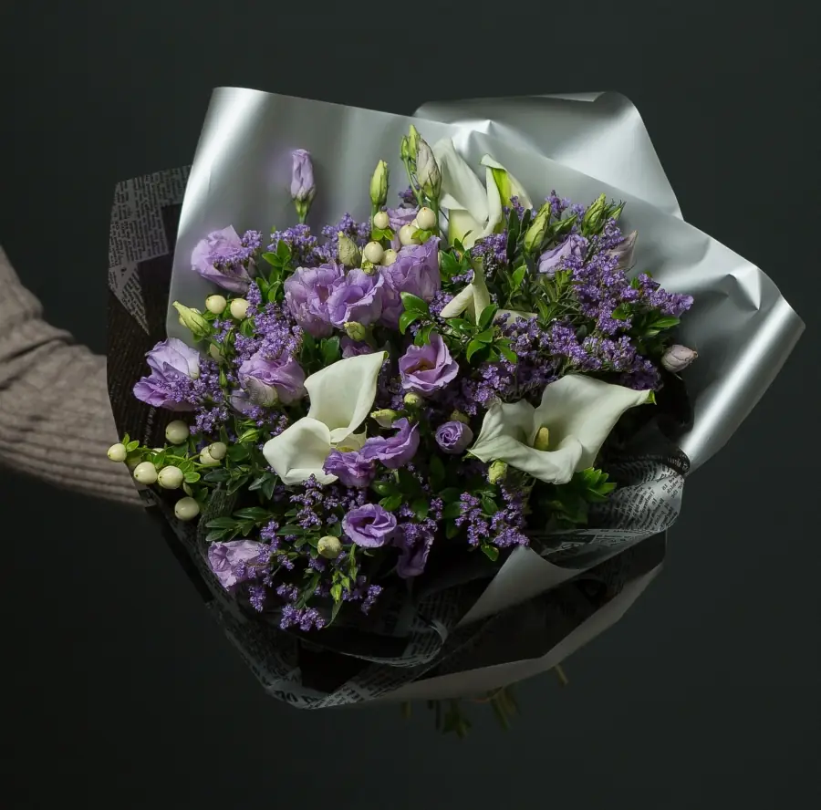 Букет "Узор Волны" - пример оформления на фото. Состоит из: Калла - 7 шт.,