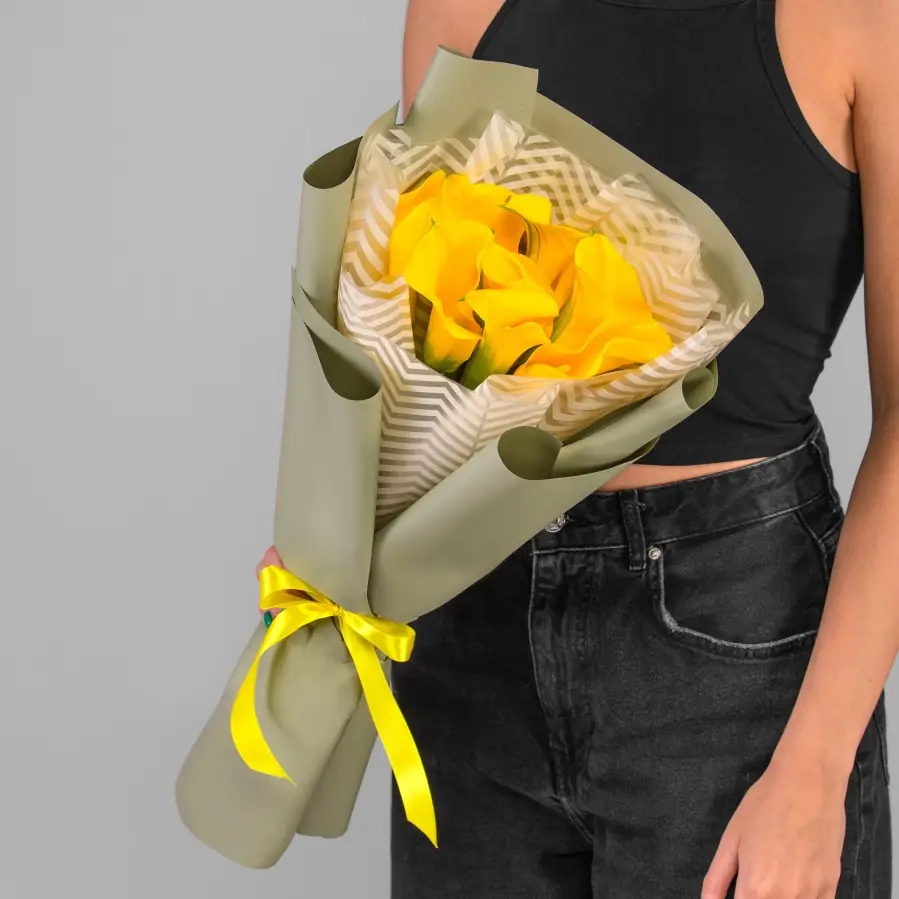9 Желтых Калл в упаковке — купить по цене от 5790 руб. с доставкой в Дзержинске