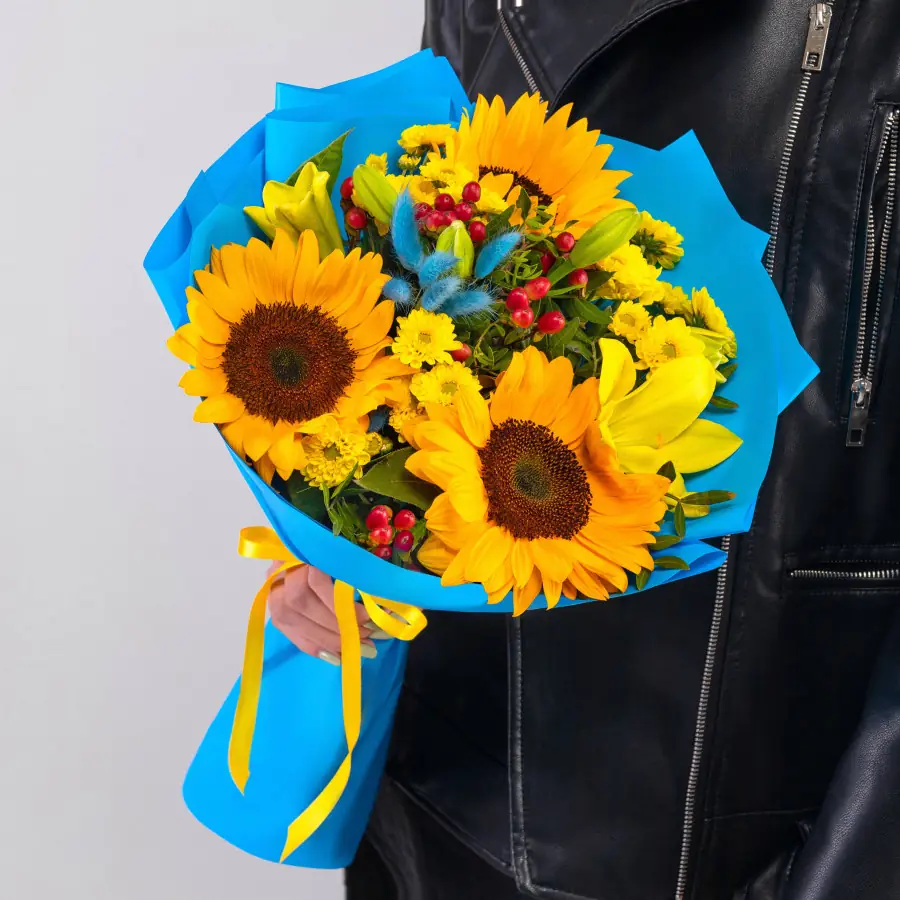 У нас можно заказать Подсолнухи и желтая лилия за 5730 руб.