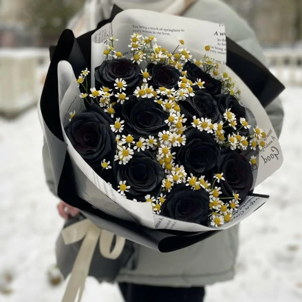 У нас можно заказать Букет из чёрных роз и матрикарии за 7700 руб.