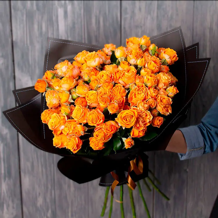 У нас можно заказать 11 Кустовых Оранжевых Роз в упаковке за 4600 руб.
