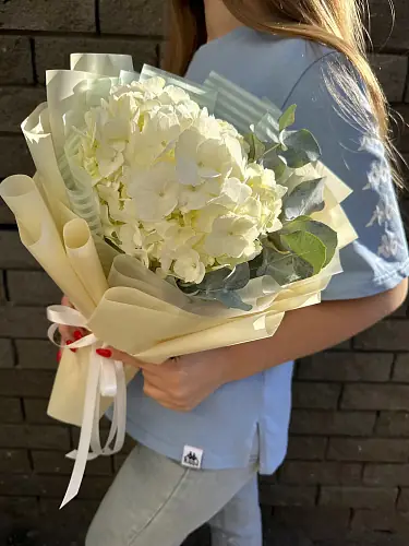 Букет "Белая гортензия с эвкалиптом" идеально подойдет для тех, кто ценит натуральность и простоту. Это отличный выбор для выражения глубокой признательности и уважения к близким людям. Он будет радовать вас своей красотой и свежим ароматом долгое время.