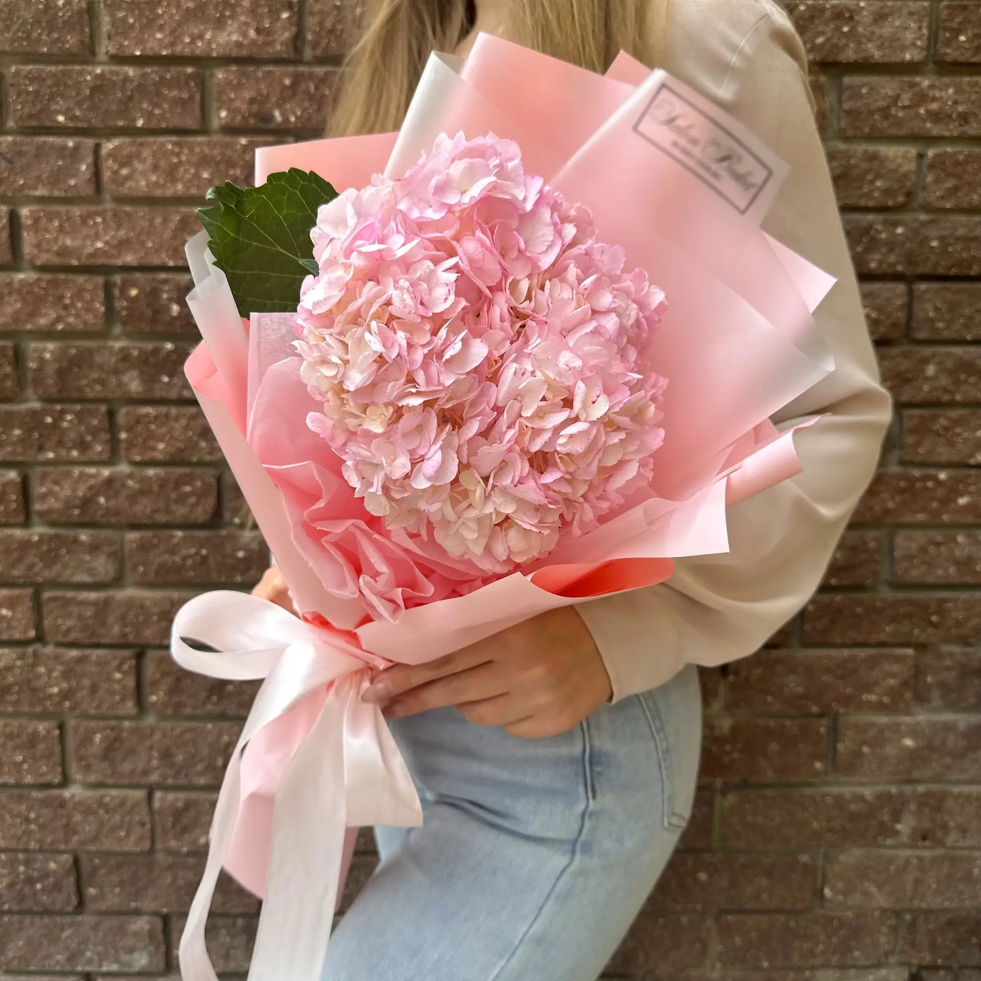 Представляем вашему вниманию восхитительный букет из розовых гортензий в дизайнерской упаковке. Гортензии – это символ нежности и элегантности, а наша дизайнерская упаковка придает букету особенный шарм и изысканность. Этот букет станет идеальным подарком на любой праздник или просто знаком внимания.