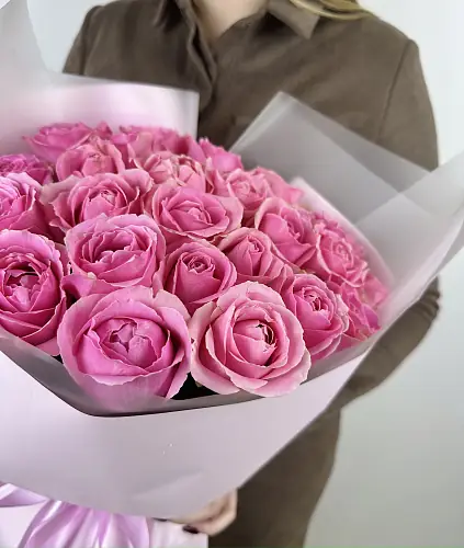 Каждая роза в этом букете тщательно отобрана и оформлена профессионалами нашего магазина, чтобы подчеркнуть их естественную красоту и грациозность. Букет из 25 розовых роз не только восхитит своим внешним видом, но и подарит непревзойденный аромат, который окутает вас теплыми воспоминаниями.