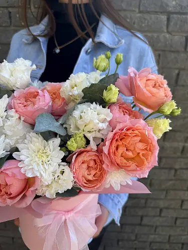Встречайте изысканную аранжировку из эустомы и кустовой розы — превосходное решение для тех, кто хочет добавить в интерьер нотку свежести и элегантности. Это сочетание цветов воплощает гармонию и утончённость, способную порадовать даже самых взыскательных ценителей.