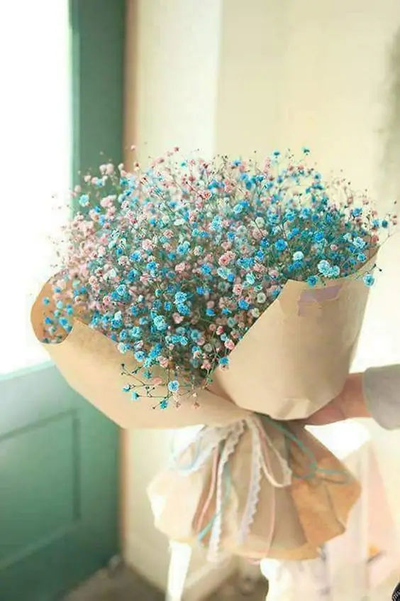 На фото - Букет "9 Розово-Голубых Гипсофил". В составе данной композиции: Гипсофила Розовая - 4 шт.,