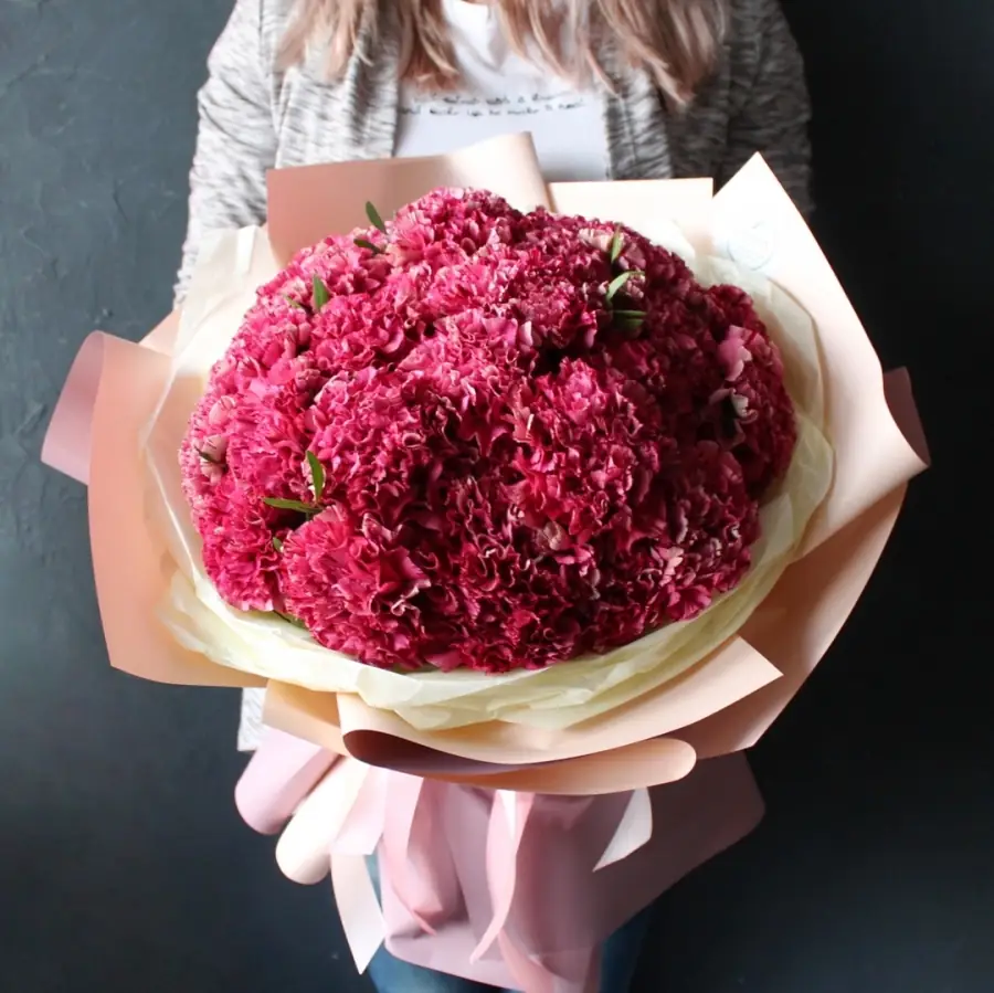 На фото - 35 Малиновых Гвоздик в упаковке . В составе данной композиции: Диантус - 35 шт,