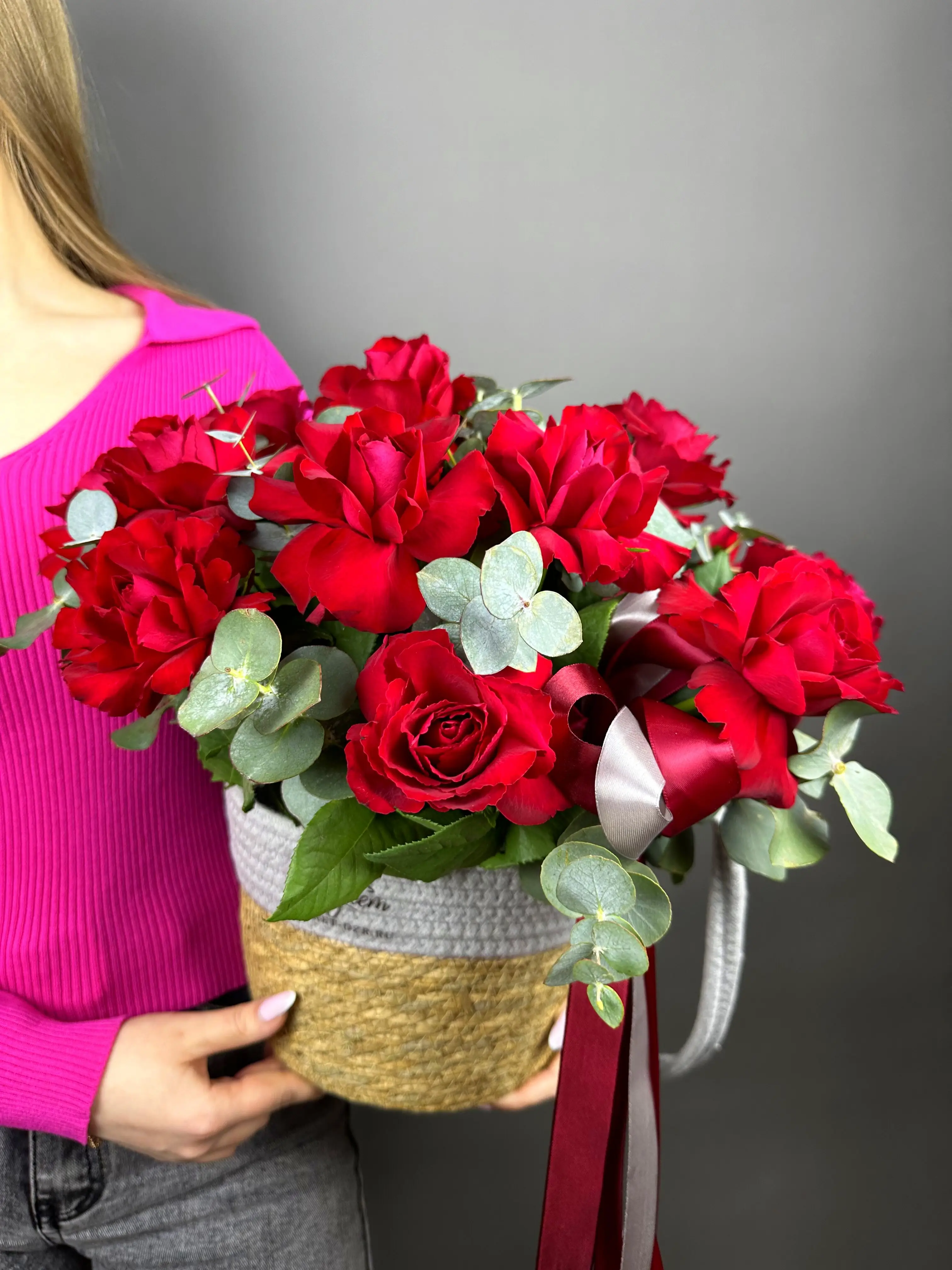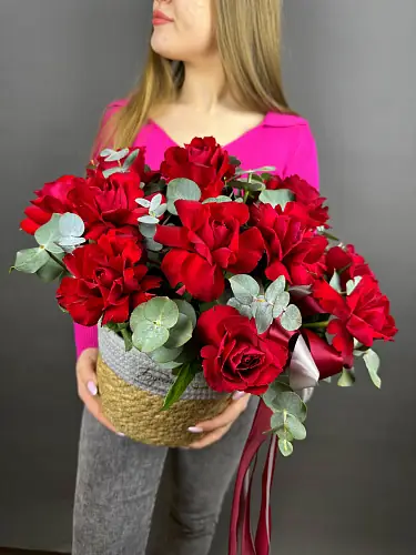 На фото - Композиция из 17 красных роз . В составе данной композиции: Красная Роза Кенийская - 17 шт,