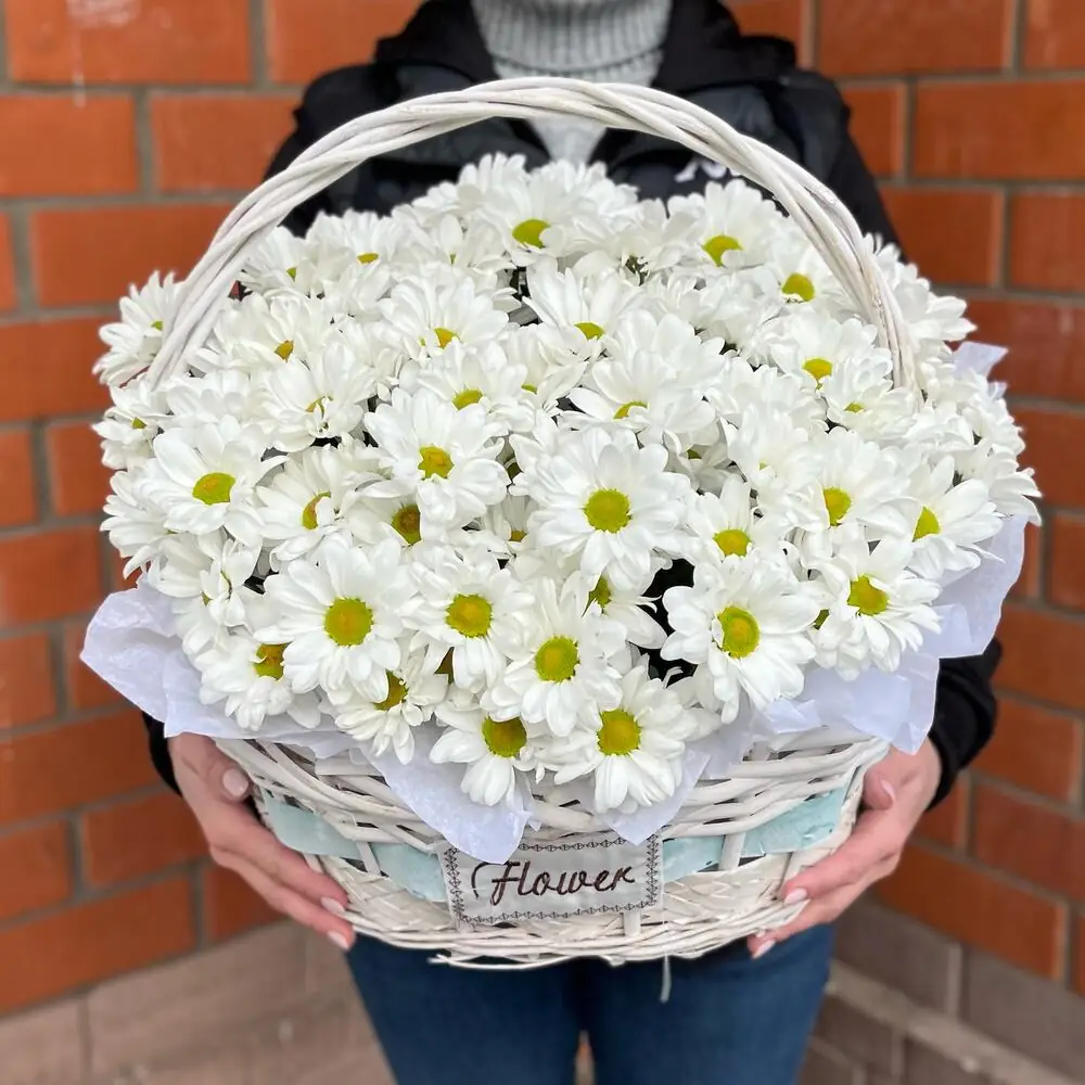 У нас можно заказать Снежные Хризантемы в Корзине за 9100 руб. с доставкой Дзержинске и по области