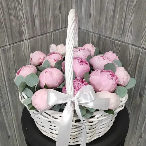 У нас можно заказать Нежные Розовые Пионы в Корзине за 13950 руб. с доставкой Дзержинске и по области