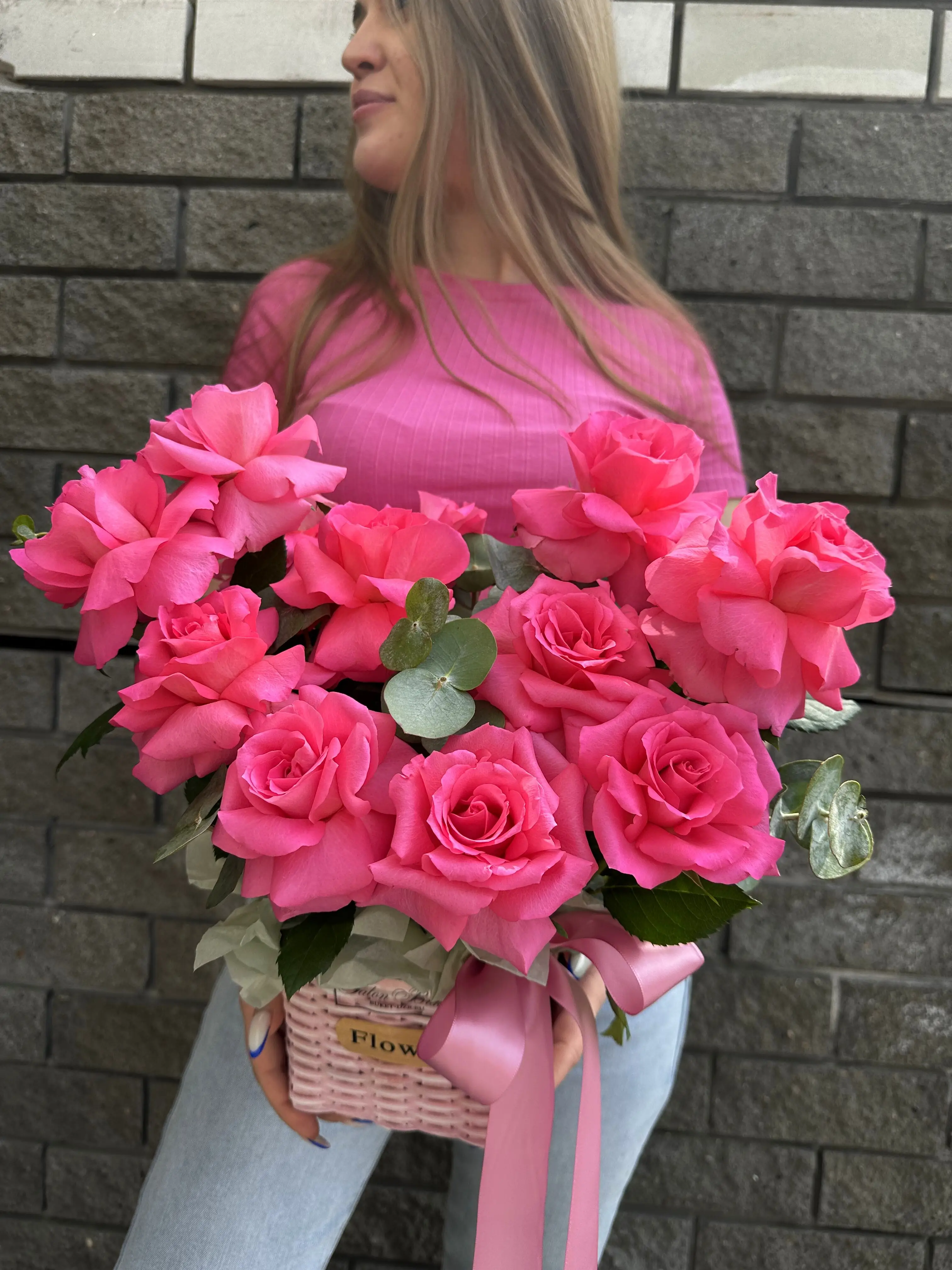 На фото - Корзина с ароматными розами . В составе данной композиции: Роза - 15 шт,