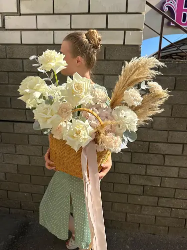 На фото - Корзина большая “Осенняя композиция” . В составе данной композиции: Гортензия - 3 шт,